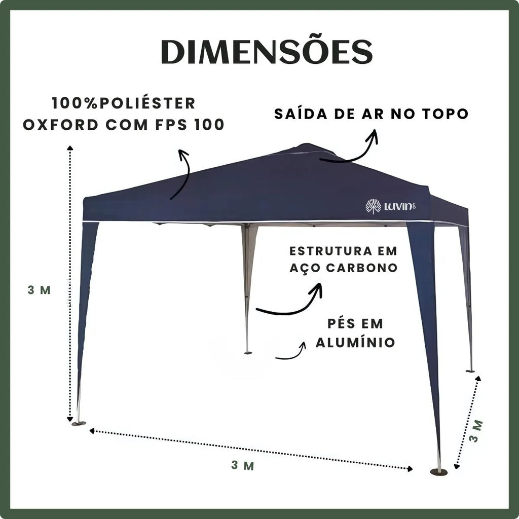 A Tenda Sanfonada Articulada LuvinCo 3x3m é perfeita para quem busca praticidade e proteção em eventos ao ar livre. Com uma estrutura metálica reforçada e montagem sanfonada, ela permite um ajuste rápido e eficiente, garantindo um abrigo confiável para diversas ocasiões, como camping, feiras, festas, churrascos e momentos de lazer na praia ou no quintal.